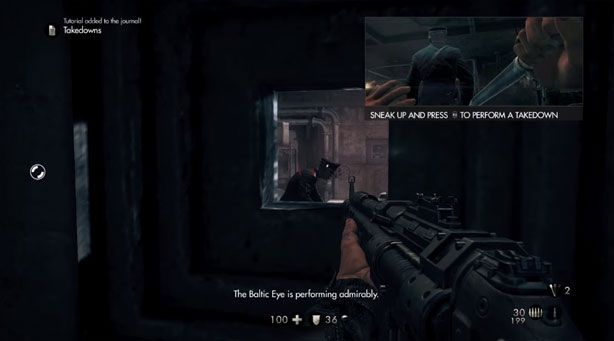 ในฐานทัพนาซีค่อนข้างซับซ้อน ให้เปิดแผนที่ดูเป็นระยะ แล้วลุยไปหาสัญลักษณ์ ! ?