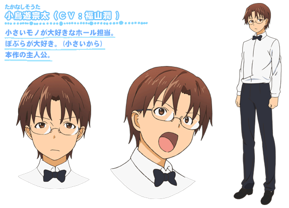 หนุ่มแว่น นักเรียน ม.ปลาย ชั้นปีที่ 1 อายุ 16 ปี เป็นลูกชายคนเดียวของบ้าน มีอุปนิสัยรักสิ่งมีชีวิตตัวเล็กทุกชนิดแม้กระทั่ง “ตัวไร” เขาได้ทำงานเป็นเด็กเสิร์ฟภายในร้าน เนื่องจากหลงเสน่ห์ของ “ทาเนชิมะ โปปุระ” เด็กสาวรุ่นพี่โรงเรียนเดียวกันที่ได้เดินเข้ามาชวนในวันหิมะตก