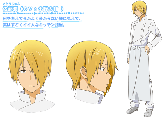ยังดีที่โซตะ มีรุ่นพี่ที่พอจะพึ่งพาได้อย่าง “ซาโต้ จุน” เชฟหนุ่มผมทองสุดเท่ มาดสุขุม ที่ดูเหมือนจะดุ แต่กลับเป็นคนใจดี แตกต่างจาก “โซมะ ฮิรูมิ” เชฟหนุ่มอีกคน ที่ดูเหมือนอัธยาศัยดี พูดเก่ง แต่กลับรอบรู้เรื่องความลับของคนอื่นไปซะหมด แถมยังนำมาใช้ข่มขู่เป็นข้อต่อร่อง ภายใต้รอยยิ้มเแสนป็นมิตร