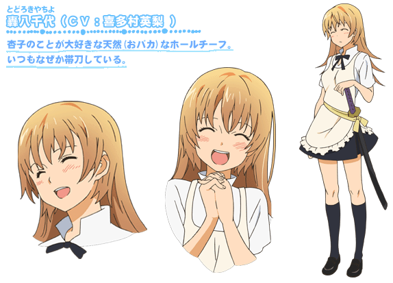 สาวเสิร์ฟ อายุ 20 ปี ผู้มักพกดาบติดตัวอยู่เสมอ และไม่เคยบริการลูกค้าได้อย่างขาดตกบกพร่อง เธอมักดูแลเอาใจใส่ “ชิราฟุจิ เคียวโกะ” ผู้เป็นผู้จัดการสาวของร้านอย่างดีเสมอ เนื่องจากเคียวโกะเคยปกป้องเธอจากเด็กเกเรมาก่อน