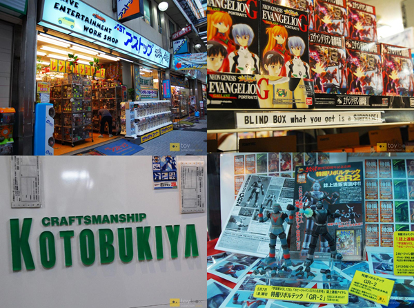 ย่านอากิฮาบาระ ที่เป็นแหล่งขายเครื่องใช้ไฟฟ้าอันดับหนึ่งในญี่ปุ่น ซึ่งนอกจากเครื่องมือต่างๆที่นำมาขายในย่านนั้นแล้ว ก็ยังมีร้านของเล่นของสะสมที่ใหญ่ที่สุด รวมของหายากระดับแรร์ไอเทมมากมาย ทั้งร้าน มันดาราเกะ ที่ตั้งอยู่ใต้ดินราวกับดันเจี้ยนลับในวิดิโอเกม / Akihabara Radio Hall ที่ๆรวมของเล่นของสะสมทั้งมือหนึ่ง มือสอง และยังเป้นที่ตั้งร้าน Official ของบ. Kotobukiya อีกด้วย งานนี้ใครเตรียมเงินไปเท่าไหร่ก็หมด เพราะมีของถูกใจ ถูกจริตมากมายเต็มไปหมด
