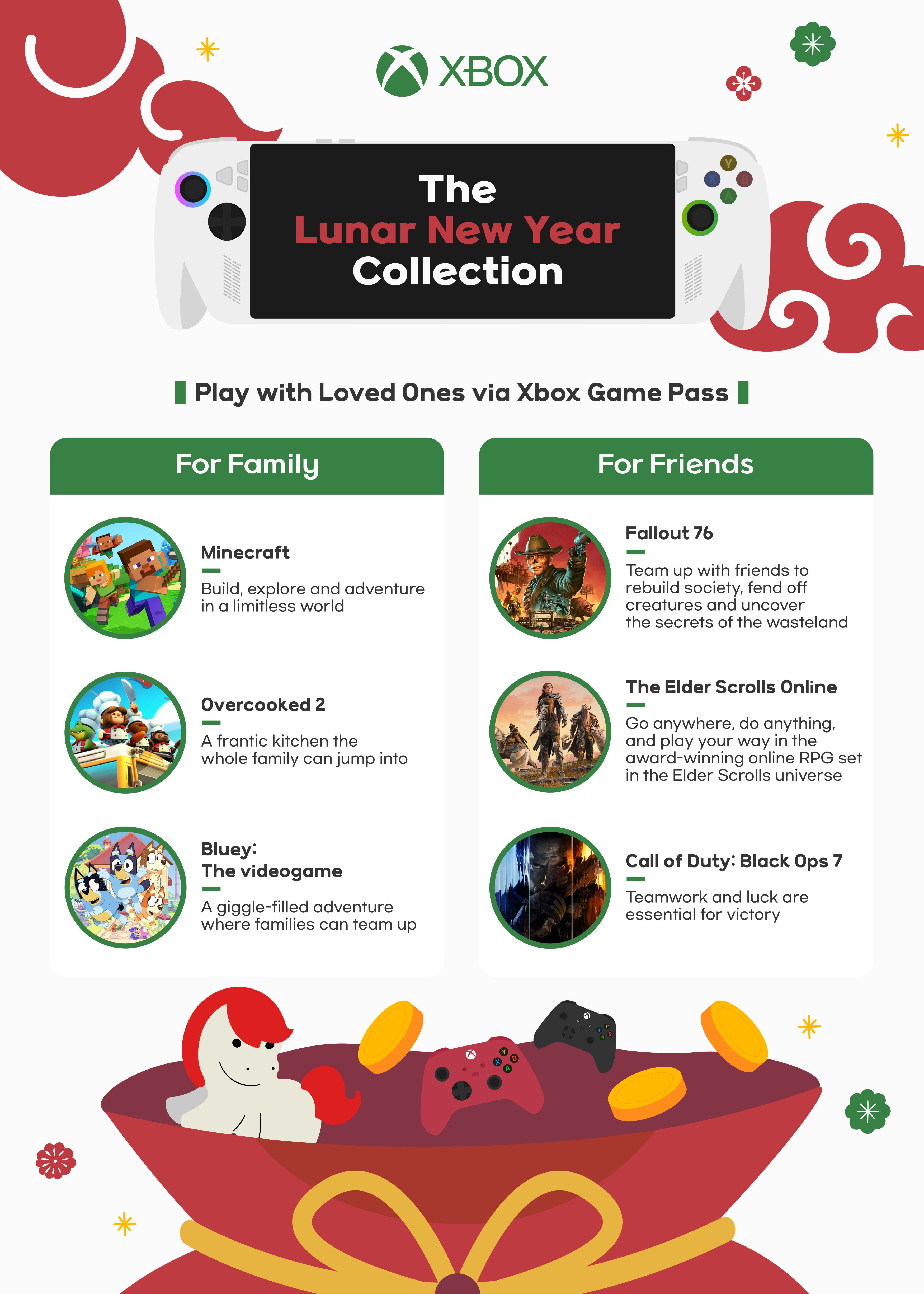 ตรุษจีนคือช่วงเวลาของการเฉลิมฉลองโชคลาภ เชื่อมสายสัมพันธ์ และร่วมสนุกสนานกับครอบครัวและเพื่อนฝูง และด้วย Xbox Game Pass การเล่นเกมสามารถนำพาคนที่คุณรักมารวมกันเพื่อสร้างช่วงเวลาที่ น่าจดจำและมีความหมาย