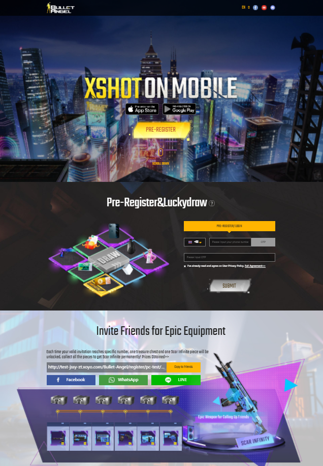 กิจกรรม 2: ชวนเพื่อนมาลงทะเบียนล่วงหน้า จะสามารถปลดล็อคเหรียญ การ์ดประสบการณ์อาวุธ การ์ดท่าเต้น พลั่วทหาร สร้อยคอ และไอเทมเจ๋งๆ รางวัลยึดตามจำนวนเชิญเพื่อนเข้ามาร่วมลงทะเบียนล่วงหน้า รางวัลอัพเกรดเท่าตัว ยิ่งถ้าเพื่อนเข้ามาลงทะเบียนล่วงหน้ามากเท่าไหร่ก็ยิ่งมีสิทธิ์ลุ้นรับ Scar อาวุธสุดคลาสสิคแบบถาวรกันไปเลย!