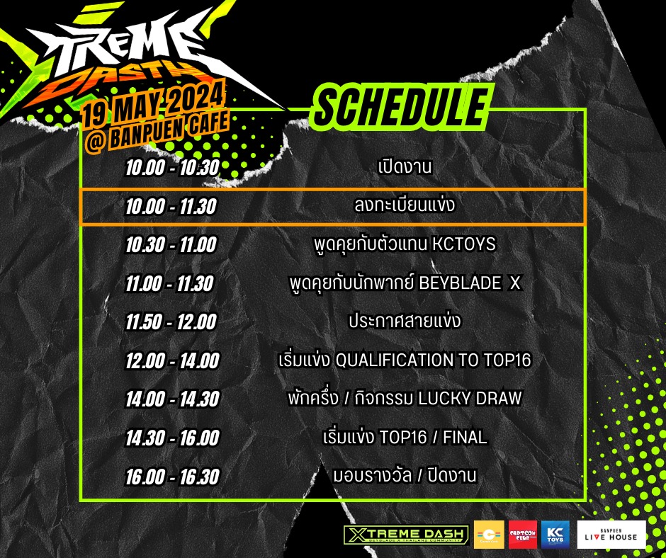 และนี่คืองานแฟนมีตของกลุ่มคนรักลูกข่างเหล็กครั้งแรก และยังเป็นงานที่คุณจะได้พบกับตัวแทนจำหน่าย / นักพากย์ และ อินฟลูที่อยู่ในด้อมนี้ด้วย กับงาน Xtreme Dasth First Tournament การแข่งขันเต็มรูปแบบ พร้อมรางวัลจุใจ ที่สำคัญ แข่งฟรี FREE!