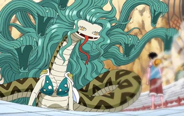ในเรื่อง “วันพีช” ยามาตะ โนะ โอโรจิจะเป็นท่าต่อสู้ของ “โบอา แซนเดอร์โซเนีย” หนึ่งในสามพี่น้องโบอา ผู้ปกครองเกาะหญิงล้วนอเมซอนลิลี่