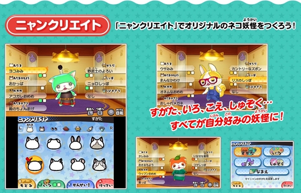 เป็นระบบใหม่ในภาคนี้ ที่ผู้เล่นสามารถสร้างภูตโยไคแมวได้จากแอพ สร้างได้ทั้งสามส่วนคือหัว, หาง, และดวงตา