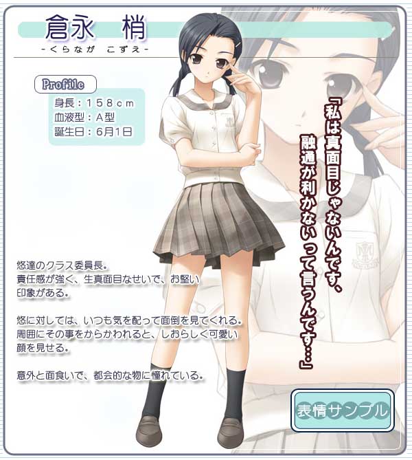 สาวน้อยผมมัดเปีย เธอเป็นหัวหน้าห้องในชั้นเรียนที่พวกฮารุเรียนอยู่ เธอชอบฮารุตั้งแต่แรกครั้งแรกเห็น เวลาที่ได้คุยกับฮารุ เธอมักจะแสดงอาการเขินอายอย่างชัดเจน ทั้งยังเป็นคนที่มีความเอาจริงเอาจังต่อหน้าที่ของตัวเองอย่างมาก