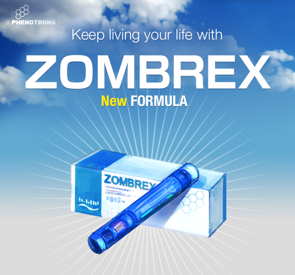 ZOMBREX คือยาระงับเชื้อซอมบี้ ซึ่งผลิตและจัดจำหน่ายโดยบริษัทเวชภัณฑ์ยักษ์ใหญ่นามว่า Phenotrans (สถานะบริษัทคล้ายกับบริษัท Umbrella ในจักรวาล Resident Evil) สรรพคุณของยาตัวนี้คือ หากใครที่ถูกซอมบี้กัด เจ้ายาตัวนี้จะสามารถช่วยระงับการแพร่เชื้อ ก่อนจะกลายสภาพเป็นซอมบี้ เพียงแค่ฉีดเข้าร่างกาย ก็ทำให้ชะลอการกลายร่าง แล้วต้องฉีดยาตัวนี้ทุกวันอย่างเคร่งครัด ส่วนข้อเสียคือหากได้รับยามากๆ ก็อาจมีผลข้างเคียงกับรางกาย ขึ้นอยู่กับสภาพร่างกายแต่ละคน